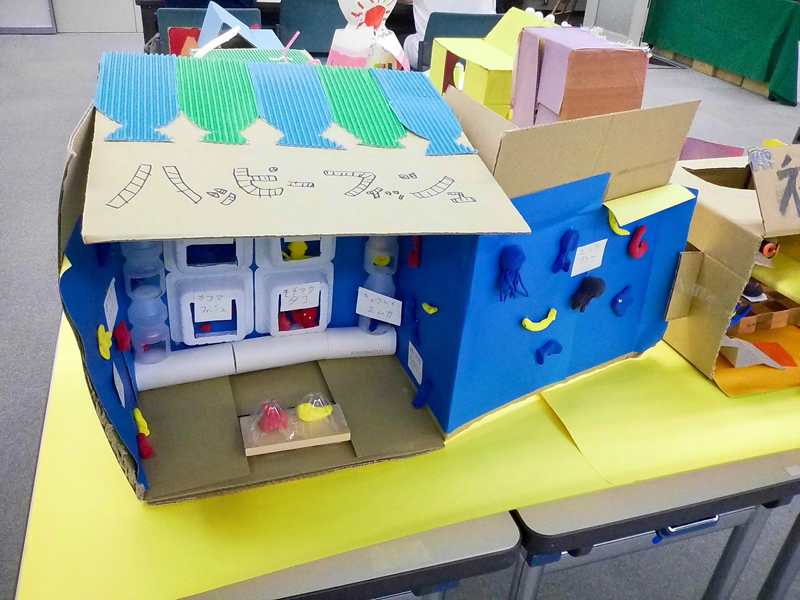 例年の秋の写生大会に代わり、今年は大阪府吹田市の学研大阪本社ビル内と大阪府堺市にある三国ヶ丘キャンパス内にて、アートスクール初となるオンラインでの工作イベントを実施しました。テーマは「未来の宇宙船が持ち帰ったもの」。小惑星探査機「はやぶさ2」によって採取された試料が、イベントの1週間後に地球へ届くことにちなんで「宇宙人のおうち」や「宇宙の食べ物」などを自由にイメージして作り、装飾したカプセルに詰め込みました。制作をしていく中で、城戸真亜子先生から子どもたちにアドバイスをしていただき、講評会も行いました。
