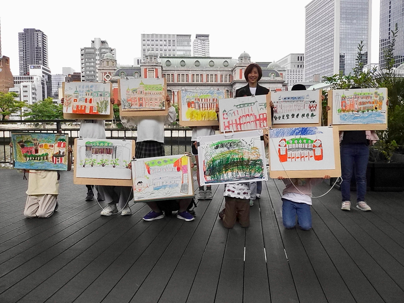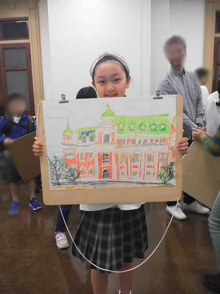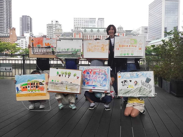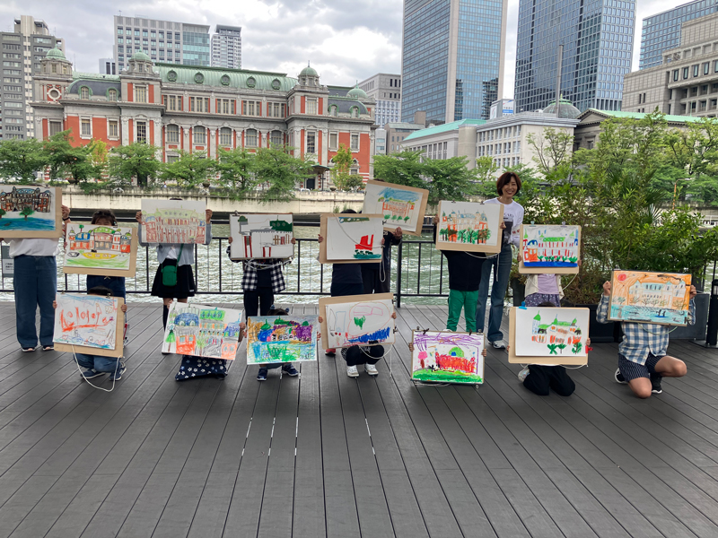 子どもたちは、鮮やかな色彩で中央公会堂を描いたり、川辺の風景に自分なりの物語を添えたりと、自由な発想でのびのびと表現しました。